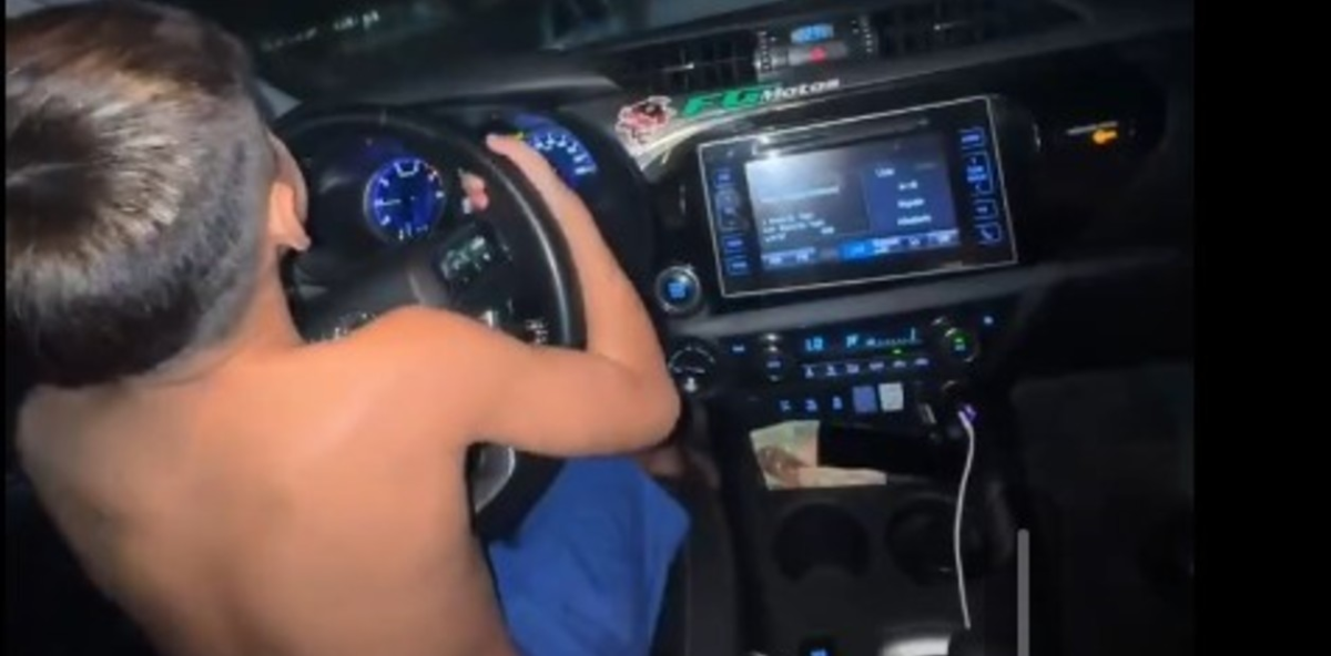 La grabación muestra al pequeño al volante, sin cinturón de seguridad y sin remera. Luce concentrado mirando la calle en medio de la oscuridad mientras conduce con un short azul, y con la música bastante alta.