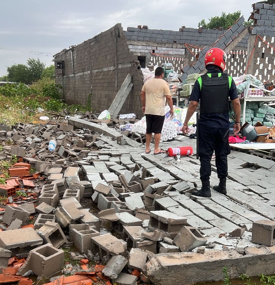 En Delfín Gallo se vivieron momentos de confusión al derrumbarse por el viento y la tormenta una pared del supermercado chino «Yan».