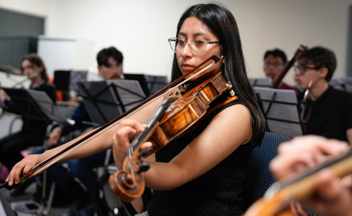 “Nos preocupamos bastante por los pasajes, nos juntamos a estudiar siempre por las obras, para que todo salga perfecto y la organización siempre esté en nuestro equipo. Nos ponemos a editar los archivos para que estemos bien organizados. Nosotros como equipo de violas siempre nos ponemos de acuerdo para trabajar”, relata sobre el proceso musical.