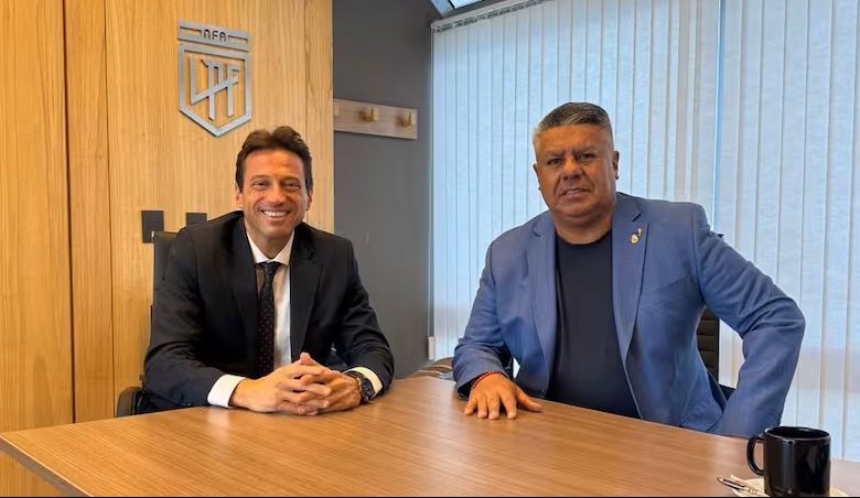 Marcelo Moretti y Claudio Chiqui Tapia, presidente de la AFA