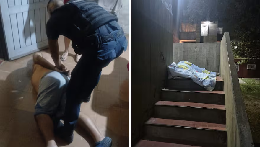 Poco después de los disparos, personal de la Policía Bonaerense intervino en el lugar, y logró reducir y detener al agresor dentro de su vivienda. En el allanamiento realizado con posterioridad, los efectivos secuestraron un gran arsenal.