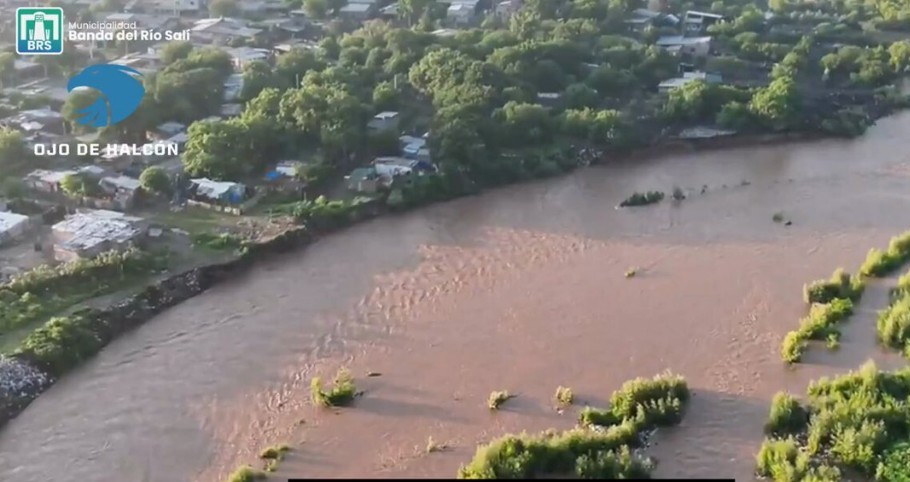 El intendente Monteros monitorea con dron la evolución de la crecida del Río Salí