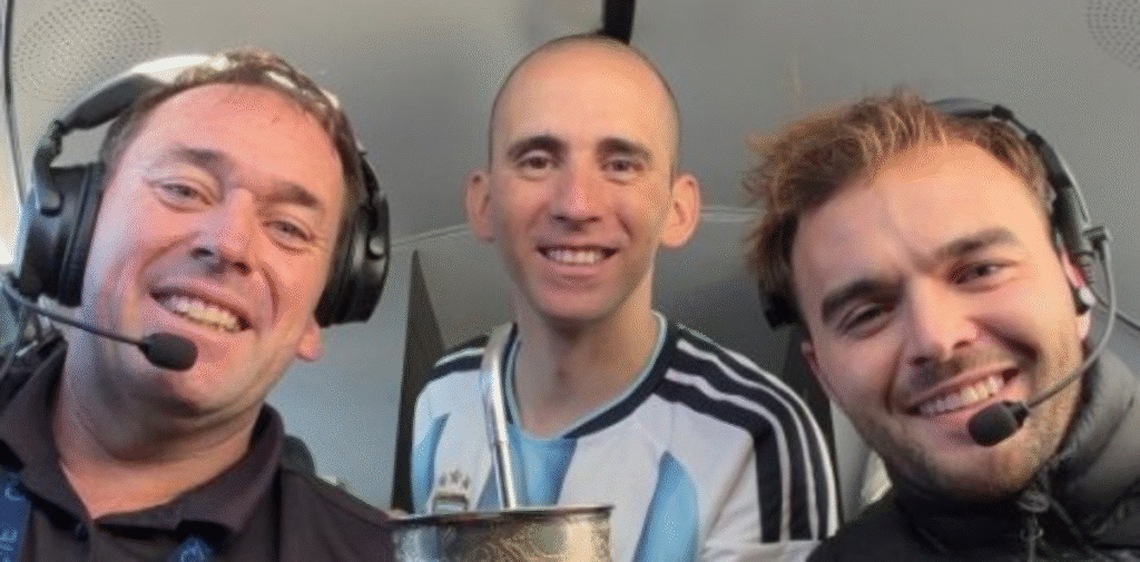 Gallo realizó el trayecto con la camiseta de la Selección Argentina puesta y tomando mates con los pilotos. Al llegar, lo esperaban un equipo médico para realizarle un chequeo médico y Gendarmería con su banda para brindarle la bienvenida y un uniforme de la fuerza para que pueda utilizarlo.