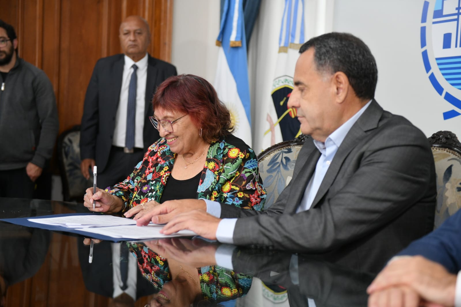 Participaron de la firma el secretario de Gobierno y Relaciones Institucionales, Raúl Albarracín y su par de Acción Política y Comunitaria, Daniel García.
