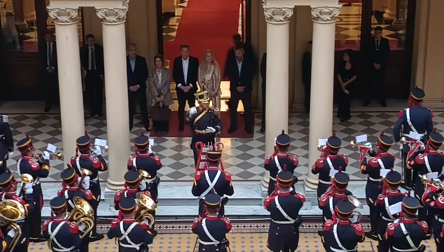La reunión semanal de la mesa política se extendió más de lo usual, hasta pasadas las cinco de la tarde. En una Casa Rosada ya semi-vacía, con empleados y policías enfilando hacia la salida vestidos de civil, la banda del regimiento de Granaderos apareció en pleno Patio de las Palmeras.