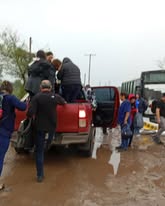 Los docentes y alumnos descendieron y subieron a una camioneta particular para poder seguir el viaje, gracias a una generosidad extraordinaria del propietario de la misma.