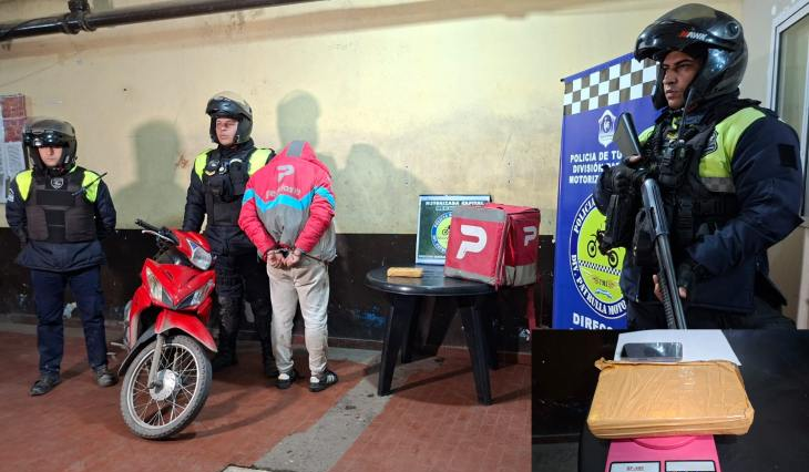 “Se dispuso diferentes operativos en distintos puntos de la capital. Es así como, en horas de la tarde, un equipo de Motorista perteneciente a esta División Especial realizaba recorridos preventivos cuando al llegar a William Bliss, altura 1500 los efectivos observaron una motocicleta de baja cilindrada que tenía su placa dominical ilegible, lo que motivó un control de rutina. Cabe destacar que el conductor vestía ropa de la aplicación de repartos “Pedidos Ya” y al percatarse de la presencia policial, aceleró la marcha del vehículo”, precisó Barboza.
